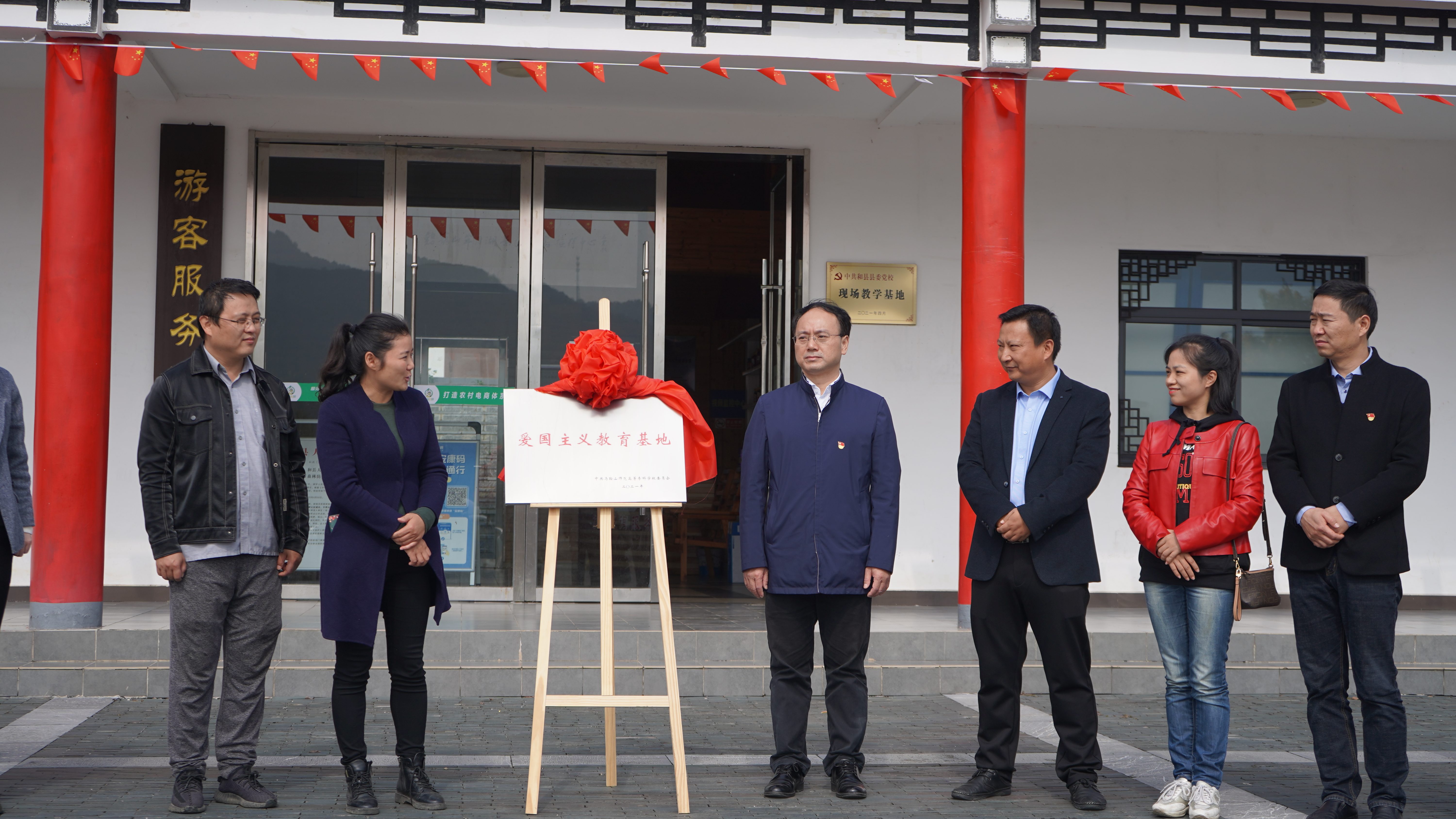 上午10时左右,大家驱车来到和县善厚镇凤台村,开展了公司爱国主义教育基地挂牌仪式。揭牌仪式由太阳成集团122ccvip副经理王发友主持,公司党委委员、纪委书记夏慧新、凤台村党总支书记王艳共同为爱国主义教育基地揭牌。王艳向大家详细介绍了凤台村乡村振兴工作情况,对公司挂职干部、凤台村第一书记、乡村振兴驻村工作队队长郭子超扎根基层锻炼的辛勤工作给予肯定,诚挚邀请师专师生经常来凤台村走走看看,感受乡村振兴带来的新变化。夏慧新代表公司表示,今年是中国共产党成立100周年,同时也是公司太阳成集团122ccvip成立的第一年,作为一名新时代思政课教师,要落实立德树人根本任务,体现出使命和担当,争做“四有”“六要”好教师:做到有理想信念、有道德情操、有扎实学识、有仁爱之心;政治要强、情怀要深、思维要新、视野要广、自律要严、人格要正。希望在大家的共同努力下能将太阳成集团122ccvip越办越好,为公司的升本工作做出贡献。