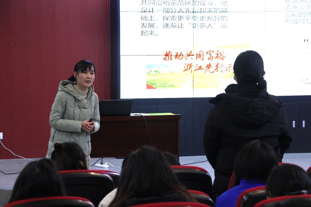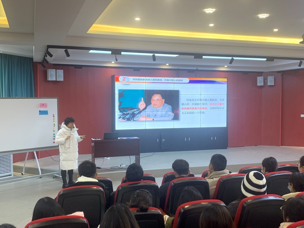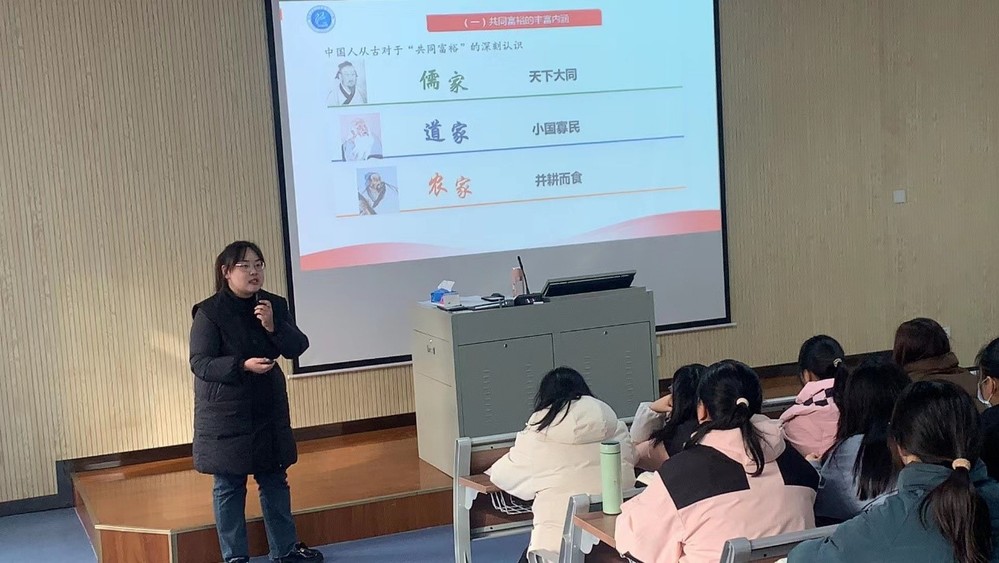 马鞍山师专的苏园园老师以《坚持以人民为中心 扎实推进共同富裕》为题,为师生们带来了一节“互动式”课堂教学展示。该教师围绕“共同富裕”的话题,通过“学习通”平台搭建教师和员工思想沟通的渠道,直击员工普遍关注的问题,澄清员工思想认识上的误区,立足事实逻辑和理论逻辑明辨是非,在中国之治的大背景下探寻实现共同富裕的路径。此节课堂教学既向同学们展示了中国式现代化的美好前景,又让人们认识到实现共同富裕的长期性、艰巨性和复杂性,有利于增强新时代老员工的责任意识和使命担当。