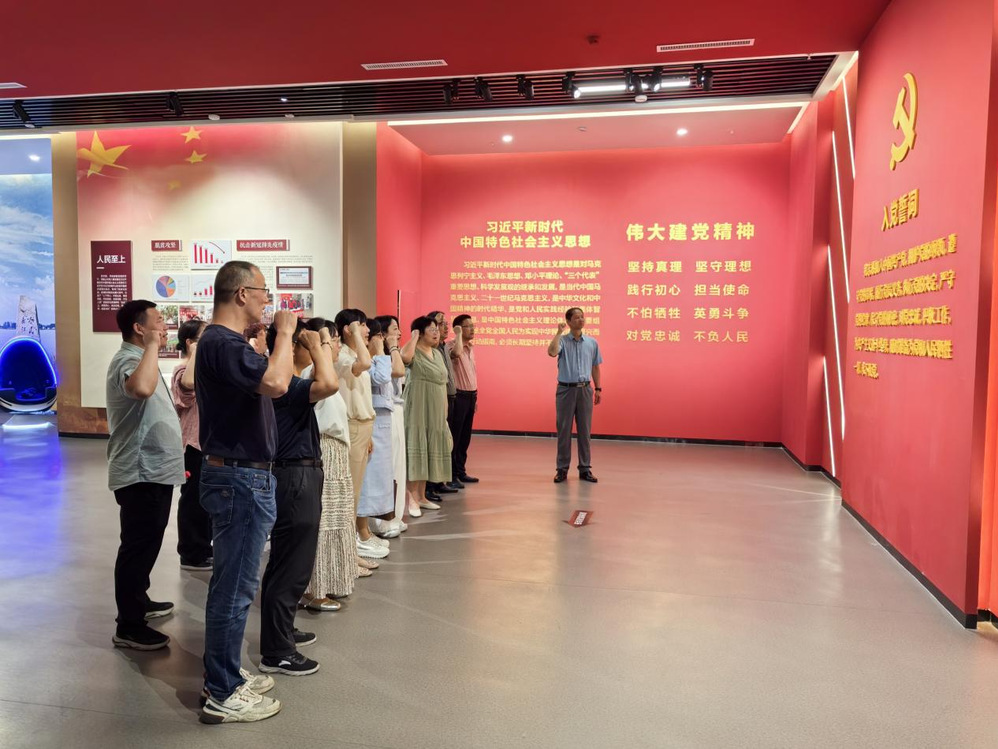 在党员宣誓环节,在公司党总支纪检委员鲁超老师的带领下,全体党员面向党旗重温入党誓词,用铿锵有力的誓言表达传承革命意志、自觉履职尽责的决心。(文字/苏园园 一审/李青 二审/鲍峰 三审/单守金)