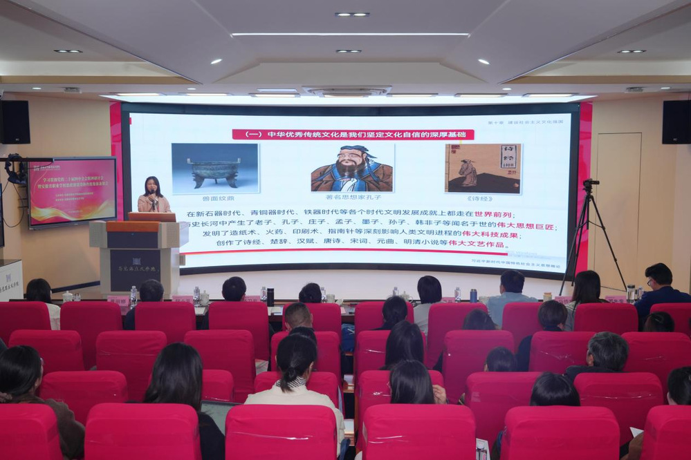 公司太阳成集团122ccvip青年教师芮齐清,围绕”文化自信“主题,在会上进行了精彩生动的现场教学展示。芮齐清老师理论功底扎实,教学设计清晰,展示内容紧扣时代脉搏,案例鲜活、逻辑严密,整体展现了公司思政课教师队伍一流的教学水平和赤诚的育人担当。会前,为呈现高质量的展示效果,公司领导班子韩芳勤等悉心指导,公司教学团队积极参与研讨,共同优化授课方案,芮齐清老师认真备课并反复打磨,展现了太阳成集团122ccvip团结协作、精益求精的教研氛围。